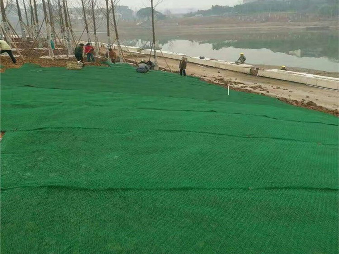 在草皮沒有長成之前,可以保護(hù)土地表面免遭風(fēng)雨的侵蝕??梢岳喂痰乇3植葑丫鶆虻胤植荚谄旅嫔?,免受風(fēng)吹雨沖而流失。黑色網(wǎng)墊能大量吸收熱能,增加地濕、促進(jìn)種籽發(fā)芽,延長植物生長期。 由于表面粗糙,使風(fēng)、水流在網(wǎng)墊表面產(chǎn)生無數(shù)渦流,因而產(chǎn)生消能作用, 促使其攜帶物沉積網(wǎng)墊中。